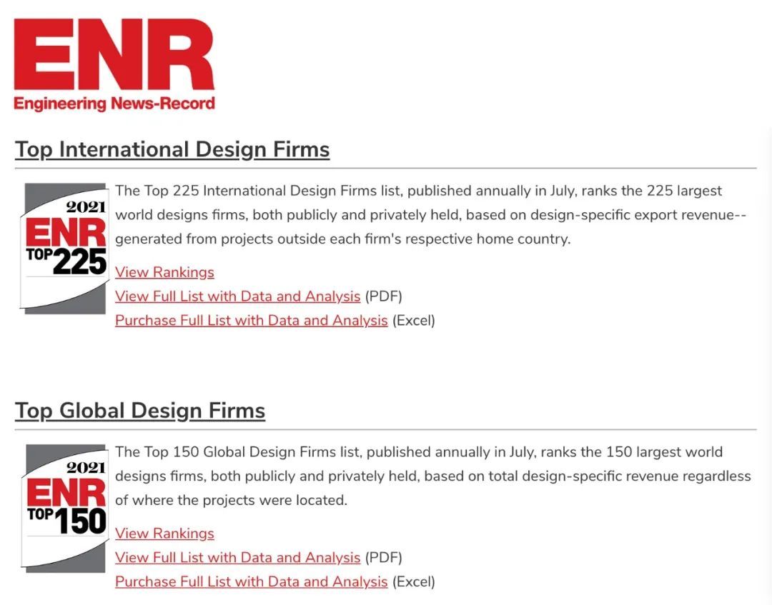 ENR“全球工程设计公司150强(The Top 150 Global Design Firms)”以设计企业的全球营业总收入为排名依据,重在体现设计企业的综合实力,CCDI位于第77名,较2020年度排名上升7名。