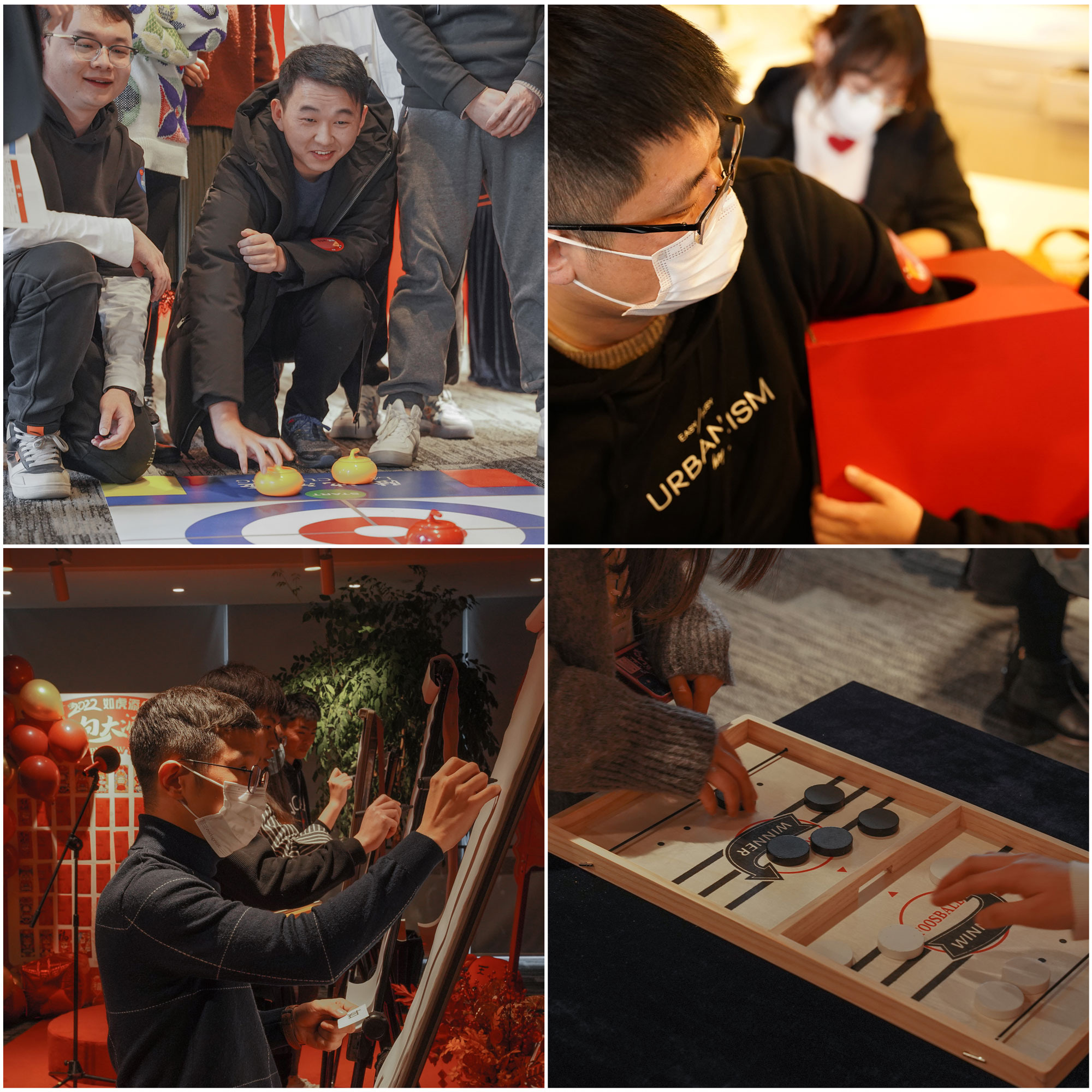 CCDI人的脑力,合作力,体力可不仅仅是体现在设计思维上,玩起游戏也绝不含糊。(由于疫情的原因,部分区域举办了相关活动)陆地冰壶、套圈、点鼻子、你画我猜、猜歌名,击鼓传花……尽显员工风采。