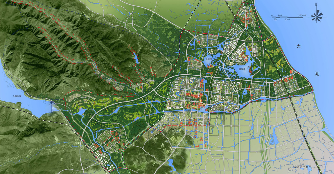 西太湖(长兴)科教生态城位于长兴县城北部,太湖西岸,处在浙江省北大门,是长兴未来重点拓展的城市新区。此次科教生态城规划,是在以生态为导向的城市规划方法以及生态城实现途径方面做了有益探索和实践。规划从战略研究入手,提出了科教生态城的功能定位、产业发展方向。着眼于生态新城的目标实现,规划从土地利用、道路交通、生态绿地、市政基础设施等方面为科教新城提出了全面的生态规划策略。